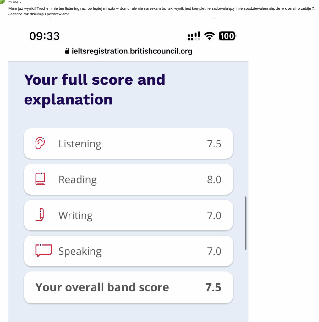 🏅 Nikt nie otrzymał wyniku niższego niż 6.5, czyli takiego, który jest wymagany przez większość uniwersytetów!